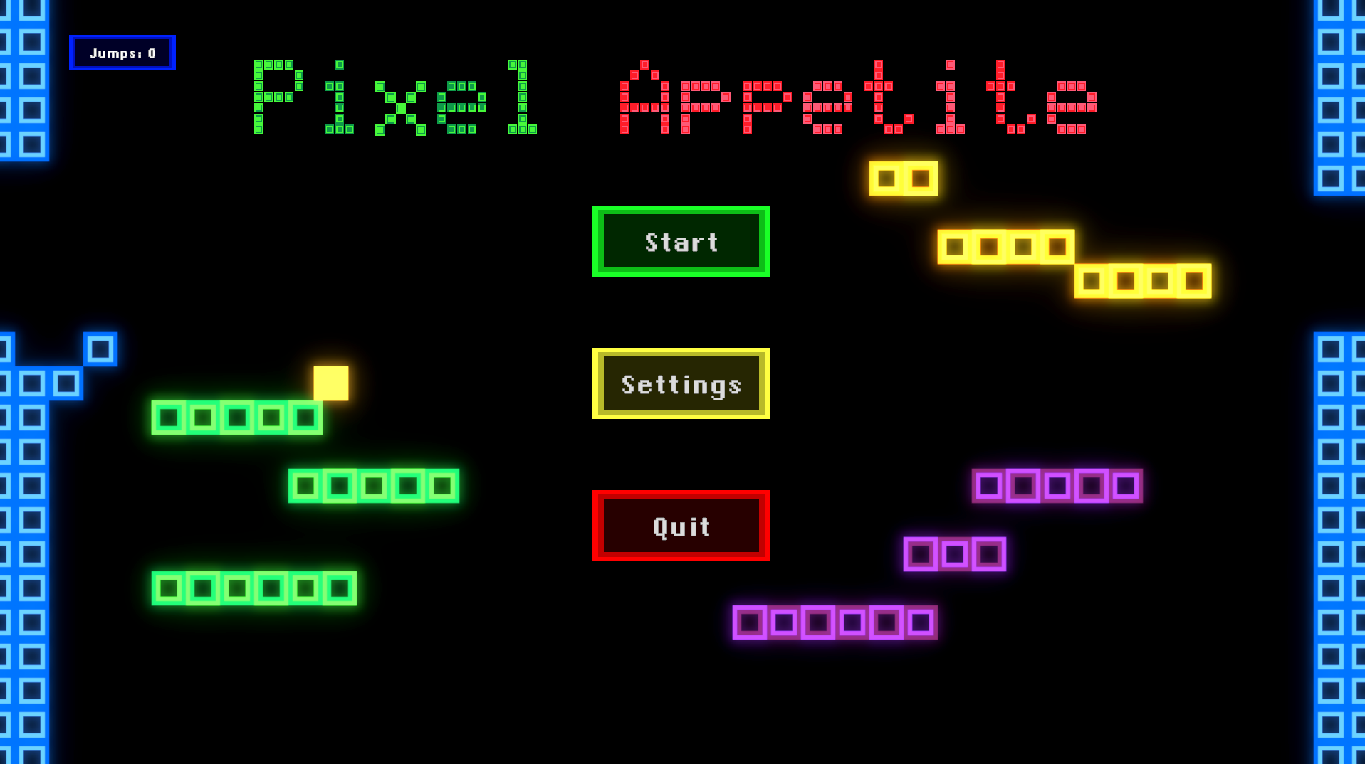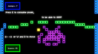 Your jumps are limited – to jump again, you must eat glowing pixel blocks!